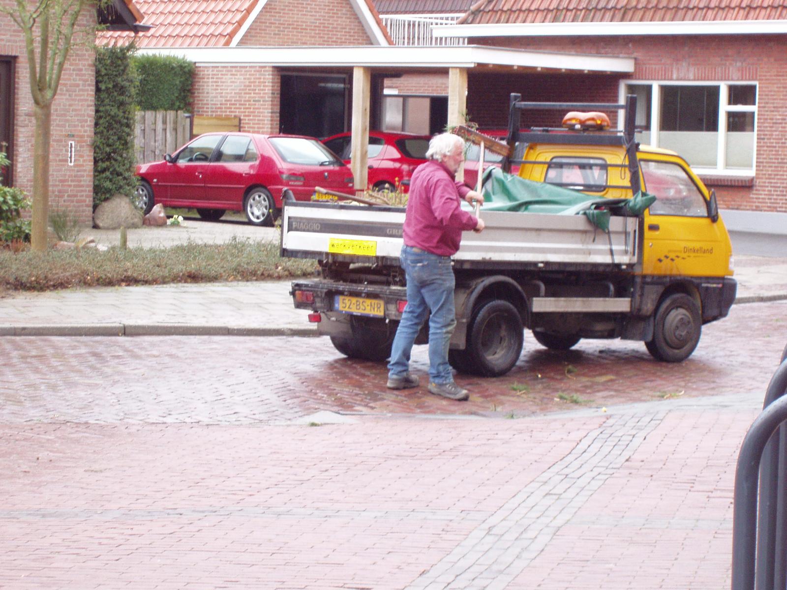 Tonnie Arends ook bezig met het opruimen van de afgevallen takken van het paashout.